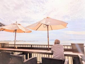 青い空と静かな海を眺めながらご友人たちとお話…思わず長居してしまいます