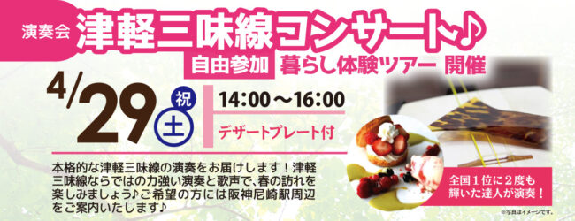本格的な津軽三味線の演奏をお届けします!津軽三味線ならではの力強い演奏と歌声で、春の訪れを楽しみましょう♪ご希望の方には阪神尼崎駅周辺をご案内いたします♪