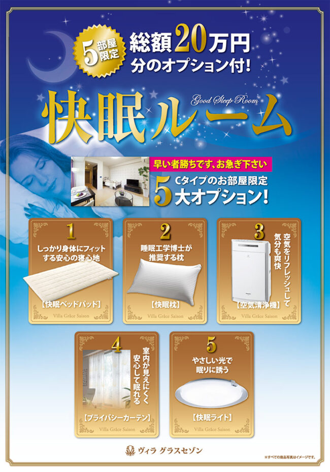 【5部屋限定】総額20万円分の快眠サポートアイテムをプレゼント! 今ヴィラ グラスセゾン Cタイプのお部屋をご…