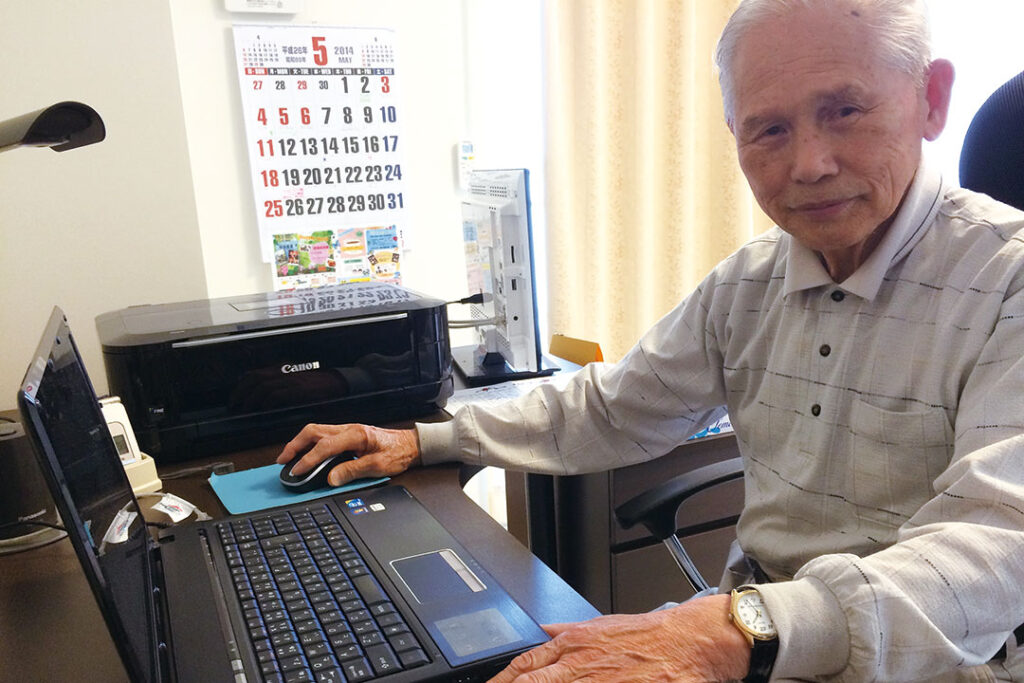 ここに来る前は一人で掃除、洗濯、炊事、全てを自分でしないといけないのがとても大変でした。それが今ではすべてここのスタッフに助けていただいているので、自分の時間ができ、趣味のパソコンや読書に熱中しております。